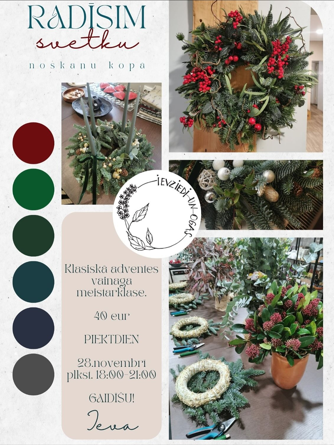 28. un 29. novembrī - adventes vainagu meistarklases Ērgļos