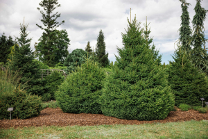 Tūjas. Kalsnavas arborētuma 143 hektāru plašajā teritorijā aug vairāk kā 2000 kokaugu dažādības: skuju koki, lapu koki, liānas. Piekalnītē skaisti izceļas tūjas. Pasaulē kopumā sastopamas ap 120 tūju dažadības, arborētumā aug 55 šķirnes. Mūžzaļo krūmu dzīves ilgums var sasniegt pat 150 gadus. Šeit augošajām tūjām ir ap 40 gadiem.